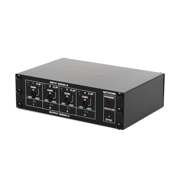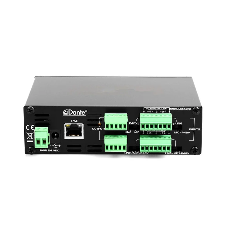 Η διασύνδεση Dante 4 MIC και LINE είναι μια επαγγελματική διασύνδεση ήχου που βασίζεται στο πρωτόκολλο δικτύου Dante, υποστηρίζοντας 4 εισόδους μικροφώνου/γραμμής και 4 εξόδους. Το βασικό πλεονέκτημά του είναι να μεταδίδει σήματα ήχου υψηλής ποιότητας, χαμηλής καθυστέρησης μέσω δικτύων IP, τα οποία είναι κατάλληλα για σενάρια που απαιτούν ευέλικτη καλωδίωση, απομακρυσμένη μετάδοση ή πολλαπλών καναλιών ήχου.